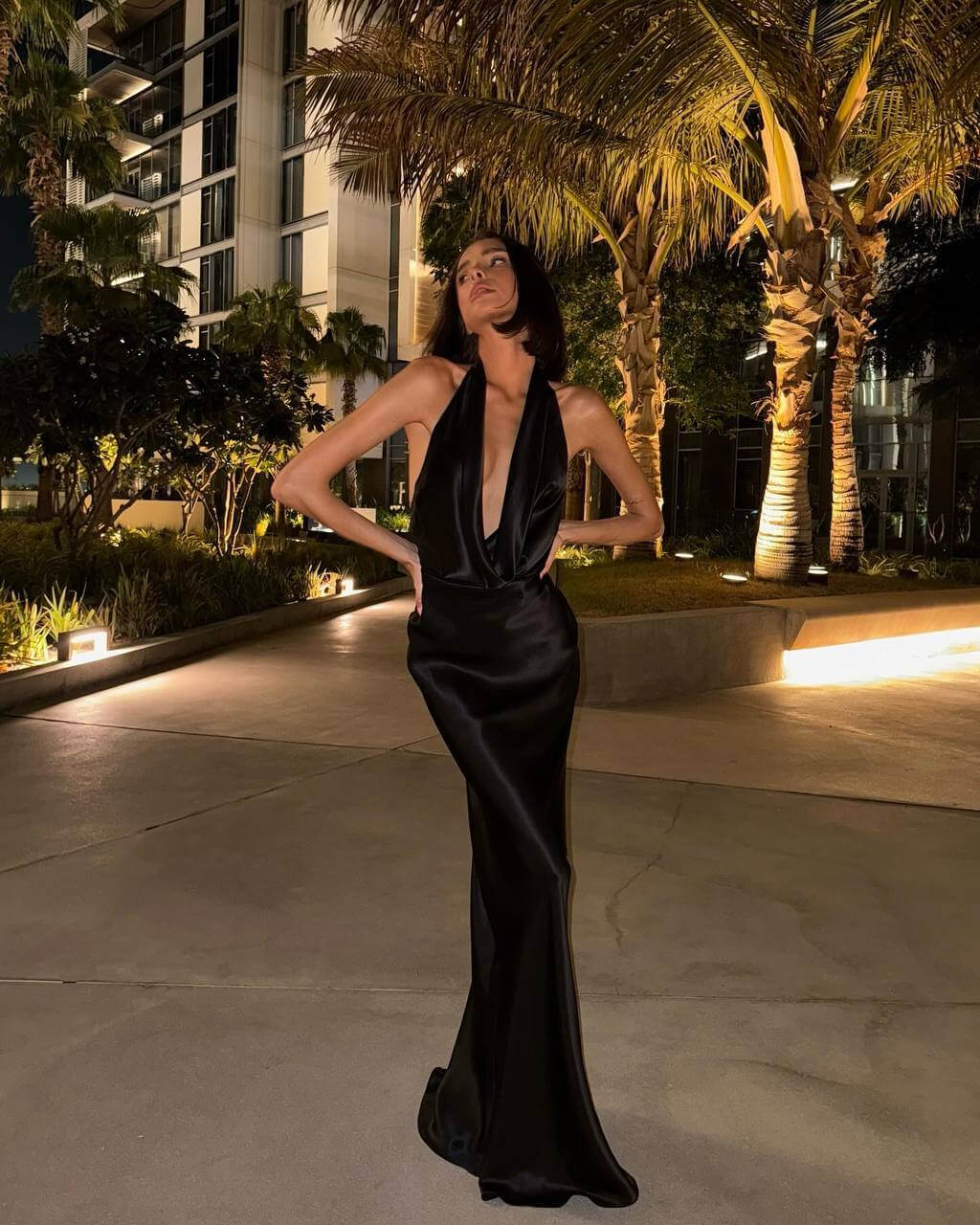 На Мари образ SAWUBONA — черное платье Беатрис, созданное из 100% шелка